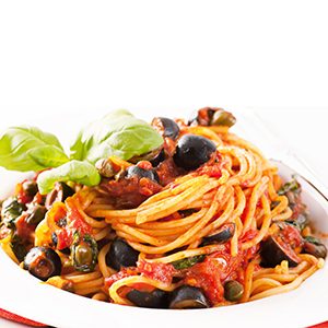 Pasta Puttanesca ( Pasta Puttanesca – Pasta con Acciughe, Olive, Capperi e Pomidoro ) Sauce arrabiata and puttanesca are quickly prepared condiments for pasta. The arrabiata is easy to make; pasta arrabiata is characterized by the savor of tomato, the flavorful and abundant… Pasta Puttanesca